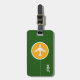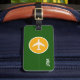 Un elemento elegante con la imagen gráfica de un avión blanco en forma de círculo amarillo, sobre fondo verde (color personalizado) personalizado con sus iniciales... para identificar sus pertenencias.