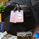 Viaja con estilo y fabularidad en esta etiqueta de equipaje rosa y morado purpurina. Purpurinoso, chica y linda y perfecta para viajar, ya sea joven chica o mujer adulta que vuela. Personalizar un nombre en el texto y tu información en la parte posterior. Imagen de rawpixel.com en Freepik.