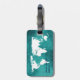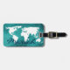 Un mapa del mundo blanco y azul con un espacio para añadir tu propio nombre, teléfono y dirección