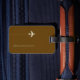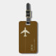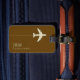 Un artículo simple y elegante con la imagen gráfica de un avión con fondo marrón oscuro, con tu nombre y iniciales... para identificar tu equipaje en el aeropuerto.