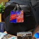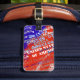 Identifique fácilmente sus bolsos con una imagen de tipografía patriótica de EE.UU. El nombre del país, Estados Unidos de América, en diferentes estilos y tamaños de letra, y la bandera de américa azul y roja. Personalízalo con tu nombre y teléfono, o cualquier otra información que prefieras