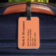 Etiqueta para el equipaje con una foto de un vaso de vino, nombre e información de dirección sobre un fondo de melocotón. Personalice con su nombre y la información de dirección utilizando las plantillas más sencillas. El color de fuente, el estilo de fuente, el tamaño de fuente y el color de fondo de color de melocotón son personalizables.