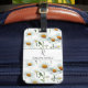 Bonito, daisies blancos florales y preciosas y hojas verdes sobre un fondo blanco limpio. Perfecto regalo de etiqueta de equipaje personalizable para alguien que amas.