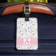 Personalized Elegant Wildflower Luggage Tag. Add a soft, colorful touch to your bags with this elegant design featuring a delicate wildflower pattern in pastel shades of pink, purple, blue, yellow, and green on a white background. A pink bar stretches across the bottom half with a white and gray monogram for a graceful, personalized accent. The back provides space for contact information. All colors can be changed to match your style. Perfect for luggage, diaper bags, gym bags, or travel gear.