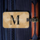 ¡Viaja al mundo con estilo! Esta elegante y moderna etiqueta para el equipaje cuenta con un mapa de fondo mundial de coñac tan marrón con un monograma personalizado en blanco y negro que puede ser personalizado con su nombre o apellido y letra inicial.