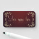 etiqueta personalizada fondo oscuro y decoración dorada para darle toque lujoso al nombre.