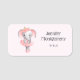 Etiqueta de nombre con un ilustracion adorable. Un elefante grisáceo con un tutu rosado y un ballet de flores bailando, de pie sobre sus dedos de los pies.