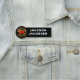 Este diseño presenta un emblema rojo y negro sobre un fondo negro.