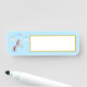 Esta increíble etiqueta de nombre se puede borrar y reescribir para que puedas usarla una y otra vez. El diseño presenta una imagen de diseño gráfico de un unicornio de color tostado con una cola y una forma de color arcoiris. También tiene cascos de colores dorados y un cuerno de oro brillante. El unicornio va acompañado de un par de nubes blancas esponjosas con un texto en color arcoiris entre las que dice "Feliz cumpleaños".