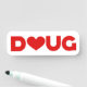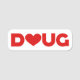 El nombre Doug con la letra o reemplazado por un corazón de amor rojo. Los colores se pueden cambiar.