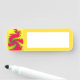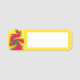 Esta increíble etiqueta de nombre se puede borrar y reescribir para que puedas usarla una y otra vez. El diseño presenta un patrón fractal que parece un dragón chino. El dragón es un intenso tono rojo y está rodeado por un fondo amarillo intenso.
