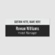 Etiqueta moderna del nombre del empleado del hotel con el nombre del negocio, el nombre del empleado y el título profesional del trabajo. Este diseño se puede personalizar con cualquier color y tipo de letra haciendo clic en el botón para editar el diseño. Elija entre un soporte magnético o un soporte de vástago de ropa.