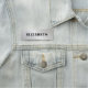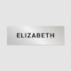 Etiqueta moderna de nombre de empleado con fondo metálico falso plateado. Añade tu nombre en una tipografía simple.