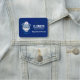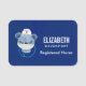 Una etiqueta con un nombre con un lindo ilustracion de un oso azul usando un gorra de enfermeras con un poco de corazón en ella. También con una máscara protectora y un estetescopio azul.