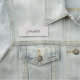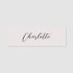 La etiqueta clásica de nombre gris minimalista presenta caligrafía elegante y un sutil fondo falso texturado.