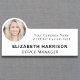 Etiqueta moderna de nombre profesional. Suba la foto del empleado y agregue el nombre de su empresa u otro texto y el nombre y título del empleado en una tipografía simple.