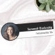 Esta etiqueta de nombre profesional presenta un fondo medio negro y medio blanco con una foto de plantilla. Personalice los campos de texto o utilice la herramienta de diseño para seleccionar el estilo de fuente, el tamaño y el color que prefiera. Reemplace la foto del marcador de posición con la suya. Una foto cuadrada funciona mejor.