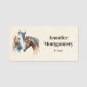 Etiqueta de nombre con un bonito dibujo de acuarela. Con un par de caballos, marrón y blanco. Cabeza y cuello visibles con pintura goteante a lo largo de la base de su cuello. Vibra del suroeste.
