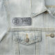 Etiqueta moderna y simple de nombre escolar con el logo de tu escuela contra un fondo metálico falso plateado.