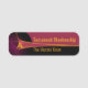 Identifíquese a sí mismo o a sus empleados con una etiqueta de nombre que incluya una raya de naranja y borgoña a través del centro del diseño. Personalice los campos de texto de la plantilla blanca, quite uno o el otro o edite utilizando la herramienta de diseño para seleccionar un estilo de fuente, tamaño y color que prefiera. Echa un vistazo al diseño de una de las otras formas.