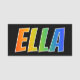 Esta diversión, características del diseño conocidas vibrantes, multicoloras de la etiqueta el nombre común "ELLA", con las letras del nombre que tiene un espectro colorido del arco iris tiene gusto del modelo del colorante de la pendiente, en un fondo coloreado negro. Un nametag como esto se pudo llevar por un voluntario, un representante/delegado de servicio de atención al cliente, o un miembro del personal cuyo nombre dado es Ella, para ayudar a identificar al portador a los clientes o a la otra gente. [~Z0000344]