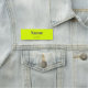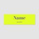 Etiqueta de nombre en amarillo fluorescente ( #DFFF00 )fondo de color sólido y fuentes grises. Diseño audaz y de moda por Alma Wad.