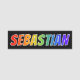 Esta diversión, características del diseño conocidas vibrantes, multicoloras de la etiqueta el nombre común "SEBASTIAN", con las letras del nombre que tiene un espectro colorido del arco iris tiene gusto del modelo del colorante de la pendiente, en un fondo coloreado negro. Un nametag como esto se pudo llevar por un voluntario, un representante/delegado de servicio de atención al cliente, o un empleado que se nombra Sebastian, para ayudar a identificar al portador a los clientes o a la otra gente. [~Z0000344]