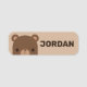 Este diseño presenta un lindo oso marrón con nombre personalizado en sans modernos marrones estilo serif tipo de letra sobre fondo marrón claro.