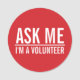 Preguntar | Insignia de Voluntario Rojo con texto en negrita blanca sans serif tipografía sobre fondo rojo.