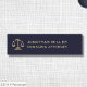 Haga una declaración elegante con nuestro Procurador Legal Services Name Tag que incluye un rico fondo azul marino y un logotipo de escala dorada de justicia. Esta etiqueta de nombre es perfecta para abogados, bufetes de abogados, asistentes legales y profesionales del derecho. Personalizar con tu nombre y título, y eleva tu apariencia profesional en eventos, conferencias o en tu propio establecimiento.