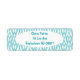 Estas etiquetas de dirección devueltas tienen un diseño Art Déco de diamantes conectados por líneas curvas en turquesa.