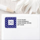Etiqueta Patrón 1 de damasco azul marino con monograma