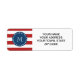 Etiqueta Patrón de franjas blancas rojas, monograma azul ma