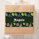 Añade tu nombre en este colorido macaron cookies sobre el diseño de un patrón de fondo verde oscuro.