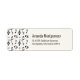 Etiquetas de direcciones con un diseño musical. Un patrón con arpa temblorosa, bajo y otros símbolos musicales.
