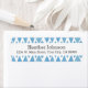 Etiquetas personalizadas de direcciones de retorno con un diseño geométrico de boho con patrón de chevron azul y blanco.