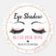 Un pegatina elegante para el maquillaje o los productos de eyelash, con un borde de purpurina de oro rosa y pestañas brillantes coronadas con una sombra de ojos de color.