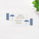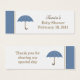 Esta etiqueta favorita presenta un paraguas azul suave con un borde azul y mocha. Personalice esta etiqueta con los detalles de la ducha de bebé y un agradecimiento.