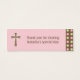Esta encantadora etiqueta favorita de la cristiandad/bautismo presenta un fondo de un patrón salpicado de polka rosa claro, marrón mocha y verde suave junto con una colorida cruz rosa, marrón y verde, que destaca la parte superior de esta etiqueta. Su texto personalizado, en una combinación de mocha marrón y rosa brillante completan este diseño. Sus invitados adorarán esta maravillosa etiqueta. Productos de coordinación disponibles. ¿Desea cambiar el estilo de letra o el color o tamaño del texto? Haga clic en el botón naranja "¡Personalizar!" bajo el diseño. Esto le permitirá seguir personalizar de su diseño. Diseño cortesía de Dotted Daisy Designs.