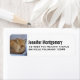 Devolver etiquetas de dirección con una fotografía de naturaleza encantadora con un zorro rojo adorable, todo enrollado en una bola descansando en la nieve fría del invierno.