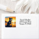 Perro lindo sentado en una playa al atardecer ai art regresa etiquetas de dirección. Bonitas etiquetas de retorno para cualquier amante del perro.