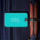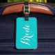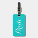 Etiqueta personalizada de equipaje de boda para novia. Elegante diseño de texto azul turquesa y blanco. Buena idea de regalo personalizado para recién casados en luna de miel.