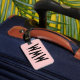Etiqueta personalizada de equipaje rosa y negro