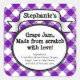 Añade tu nombre a esta etiqueta personalizada de macana de uva u otra gelatina /jam, con un fondo super lindo para el chequeo de gingham y tu nombre en un cartel ondulado. Parece una gelatina de marca o un frasco de mermelada. Añada el título y el texto de detalle de su personalizado junto con la foto opcional a esta etiqueta de la jarra de conservas. ¡Perfecto para las golosinas caseras! También personalizar el color de fondo (después de introducir su información), haga clic en "personalizar", luego en "editar" y "fondo". Utilice un pegatina grande para un lado del frasco estándar, o una tapa de tarro de boca ancha, y utilice un pegatina pequeño para las tapas regulares.