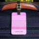 El diseño presenta rayas rosas con guarnecido dorado brillante purpurinoso. Puede ser personalizado con su nombre y datos de contacto.