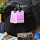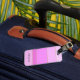 El diseño presenta rayas rosas con guarnecido dorado brillante purpurinoso. Puede ser personalizado con su nombre y datos de contacto.