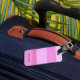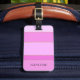 El diseño presenta rayas rosas con guarnecido dorado brillante purpurinoso. Puede ser personalizado con su nombre y datos de contacto.