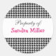 Pegatina personalizado de gala blanca y negra, perfecto para etiquetar libros y útiles escolares.