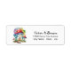 Un diseño muy divertido y bonito con pequeñas y lindas casas de setas. Este diseño de acuarela suntuoso y dulce tiene un par de lugares de hadas de setas muy coloridas. Agregue su nombre y detalles de dirección para personalizarlo.