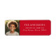 Elegantes etiquetas de dirección de retorno rojas con tu foto personalizado.